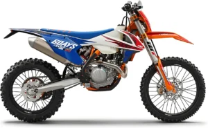 Die KTM 500 EXC-F Six Days aus dem Jahrgang 2018 in der Enduro-Kategorie ist mit einem Einzylinder-Viertaktmotor ausgestattet, der 58 PS (42,7 kW) leistet, bei einem Trockengewicht von 107 kg.